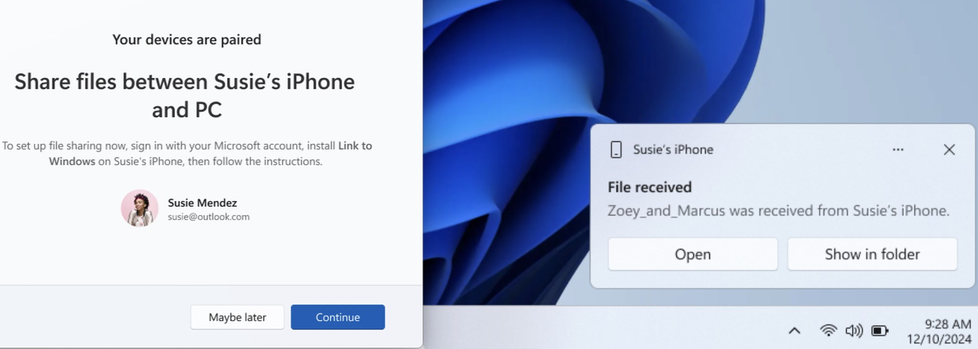 Kullanıcıların iPhone’daki bir dosyayı PC’ye aktarmak için dosyaya gitmeleri, paylaşım simgesine tıklamaları ve ardından “Windows Bağlantısı”nı seçmeleri gerekecek. Burada dosyayı paylaşmak istedikleri cihazı seçmeleri gerekecek. Bilgisayardaki bir dosyayı iPhone’a aktarmak içinse kullanıcıların dosyaya sağ tıklayıp “Telefonum”u seçmesi gerekecek.