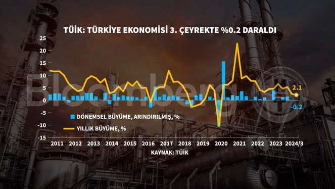 Türkiye ekonomisi 3. çeyrekte dönemsel bazda yüzde 0,2 daraldı. Beklentiler de bu yönde bir daralmaya işaret ediyordu.