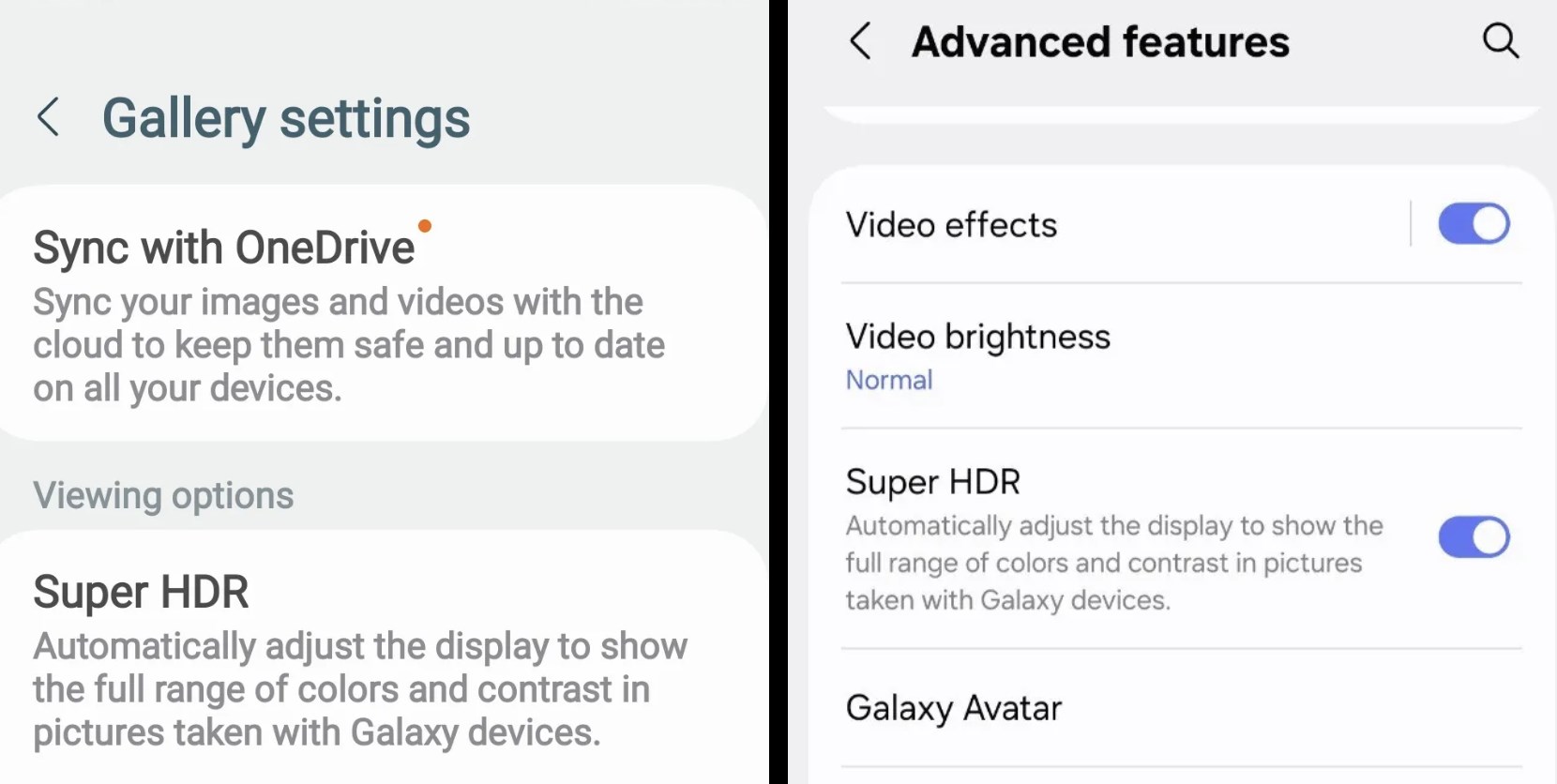 Super HDR, HDR fotoğraf ve video çekme, görüntüleme ve yayınlamanıza izin veren sistem genelinde bir özellik. Ancak bu özellik açıkken, HDR fotoğraf veya video görüntülendiğinde ekran parlaklığı sona çekiliyor ki Samsung cihazlarda ekran parlaklığı oldukça yüksek. Bu, çoğu kişi için geceleri rahatsız edici. Bu özellik One UI 6.1 sürümünde yalnızca Galeri uygulamasında kapatılabiliyor. Neyse ki One UI 7 güncellemesi Süper HDR’ı tamamen devre dışı bırakmanıza izin verecek.