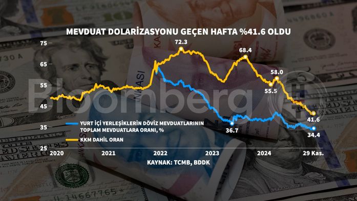 TCMB tarafından açıklanan verilere göre, bankalardaki toplam yabancı para mevduatlar 22 Kasım 2024 tarihinde sona eren bir haftalık sürenin sonunda 195 milyar 6 milyon dolar düzeyinde oldu.