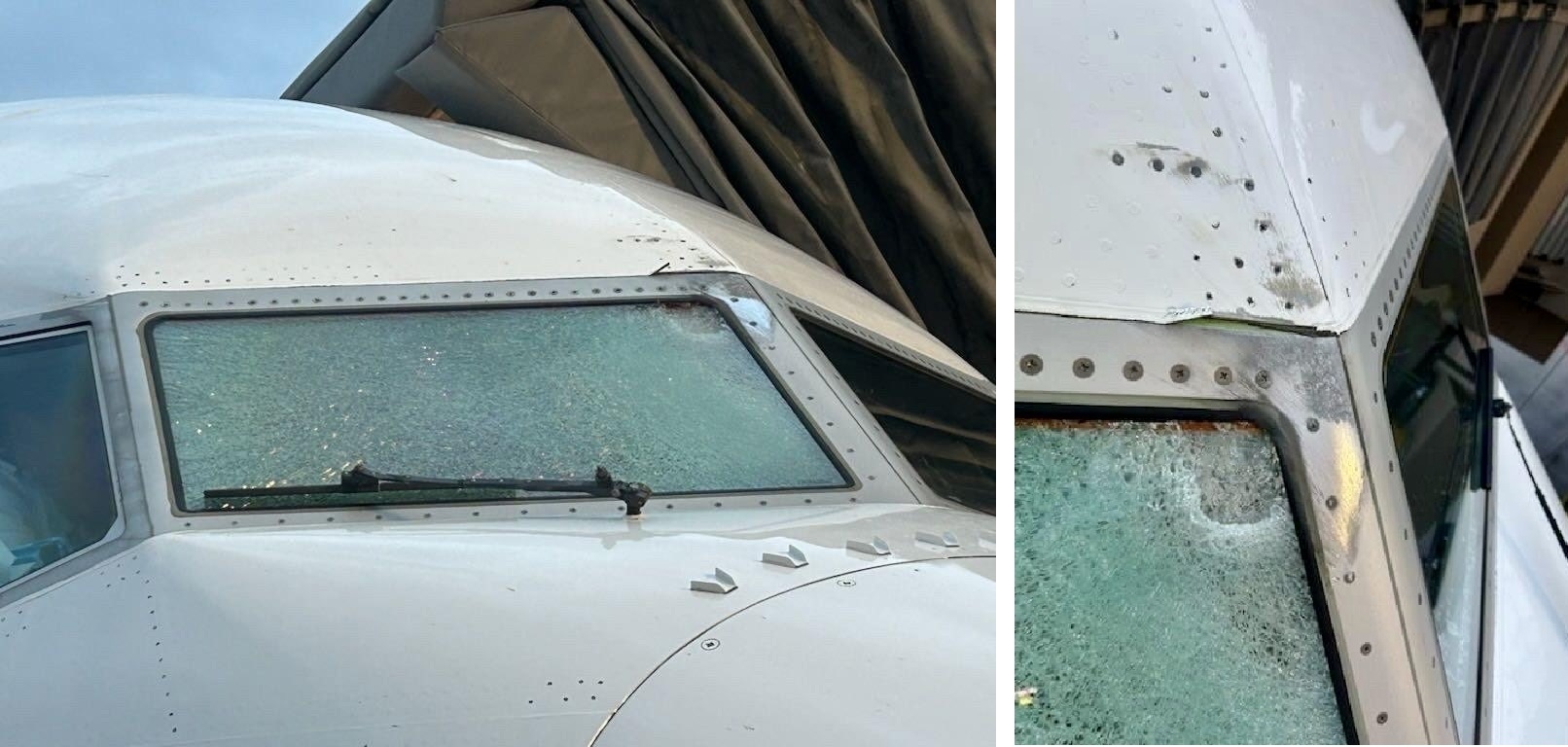 Fotoğraflarda camın sağ üst bölümüne güçlü bir darbe aldığı, metal çerçevenin de deformasyona uğradığı görülüyor. Uçak o sırada yaklaşık 36.000 feet (10.970 metre) yükseklikteydi.