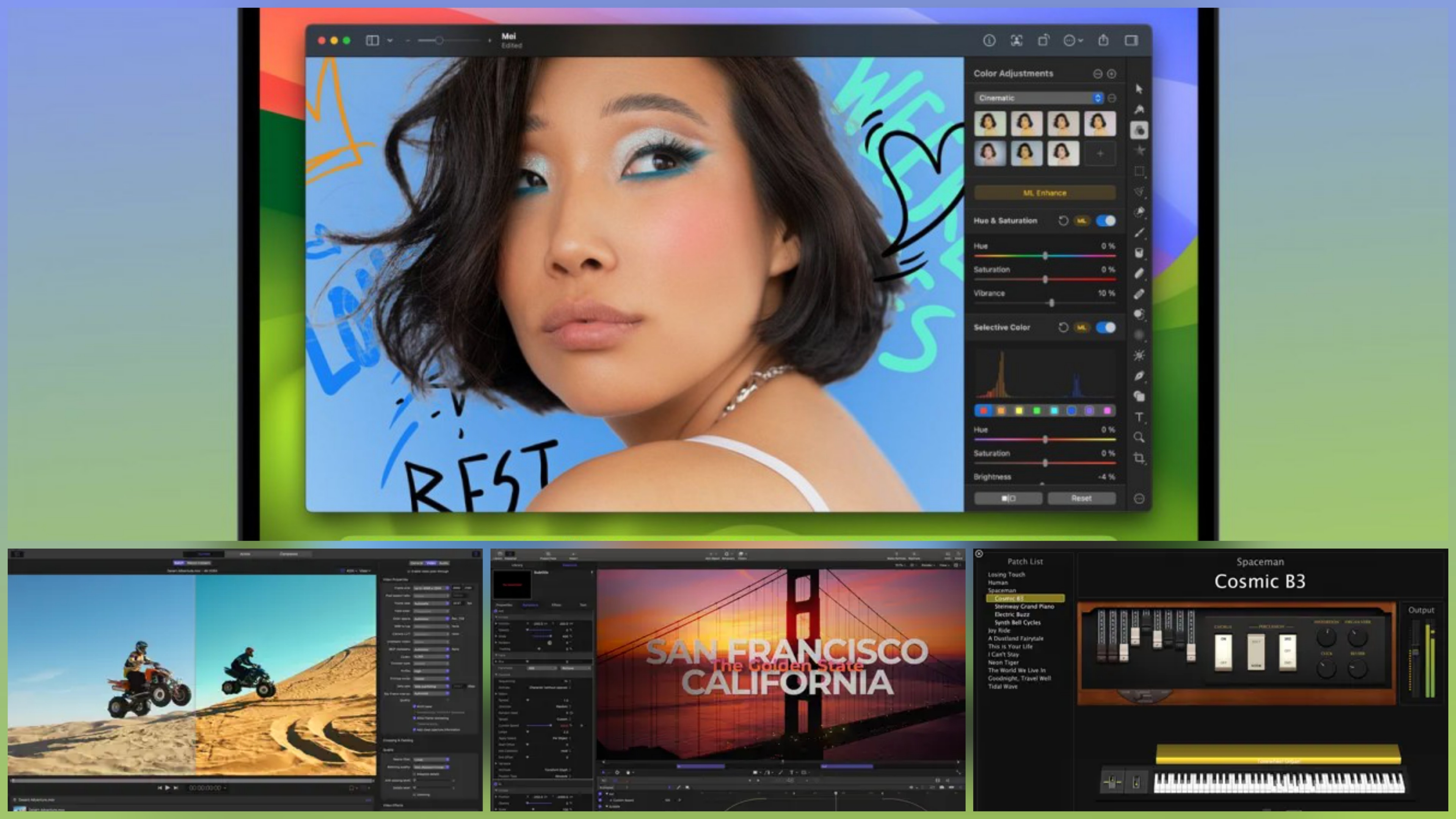 Yukarıda bahsettiğimiz Pixelmator Pro uygulamasının yanında MainStage uygulaması Logic Pro çatısı altında canlı performanslar için kullanılırken, Compressor uygulaması Final Cut Pro bünyesinde video ve ses dosyalarını sıkıştırıyor, Motion da yine 2D/3D başlıklar, geçişler ve efektleri için kullanılıyor.