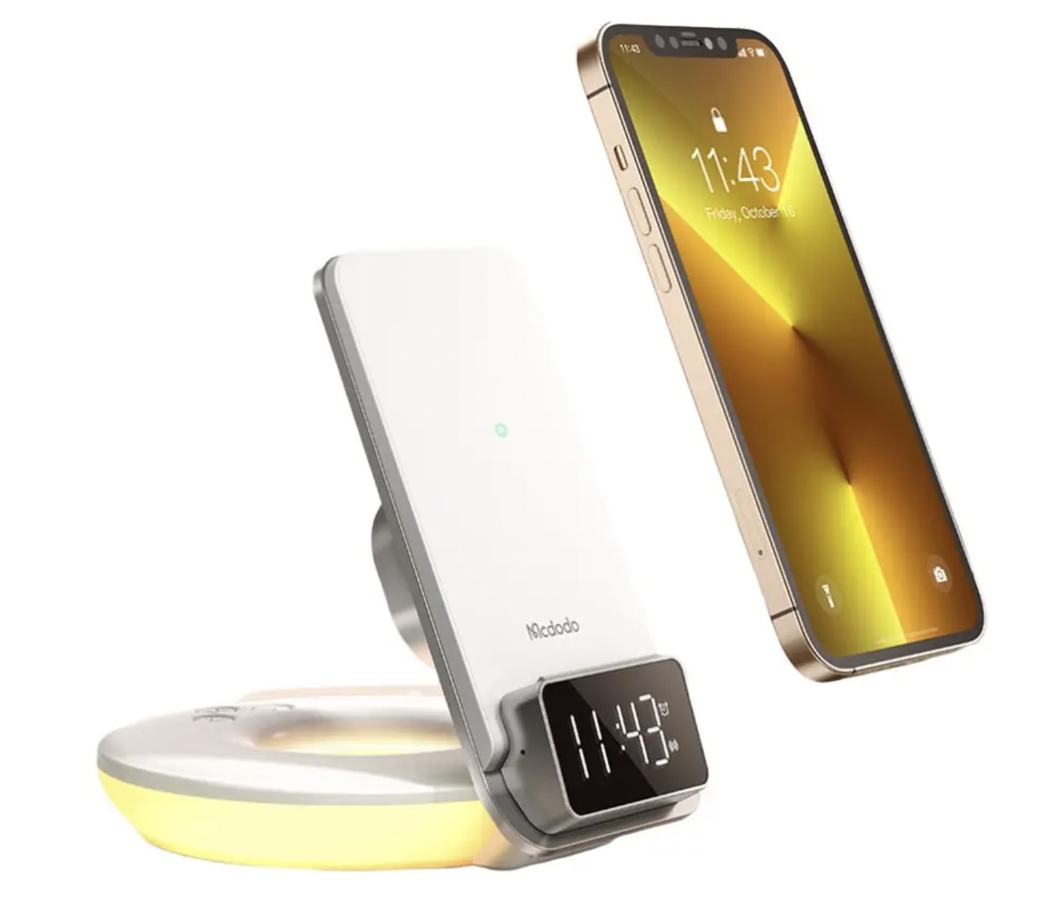 CH-1610; kablosuz şarj, telefon standı, dijital saat ve gece lambası fonksiyonlarını bir arada sunuyor. Hem masanızda hem de başucunuzda şık ve pratik kullanım sunuyor.