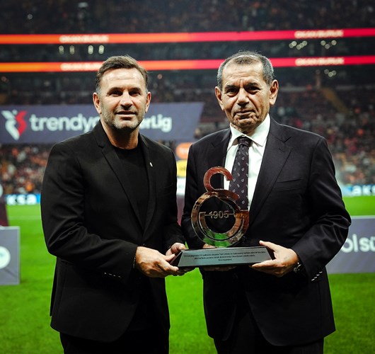 Karşılaşma öncesi Galatasarayımızın başında 100. lig galibiyetine ulaşan teknik direktörümüz Okan Buruk’a, Galatasaray Spor Kulübü Başkanı Dursun Aydın Özbek tarafından karşılaşma öncesinde plaket ve kendisine özel hazırlanan forma takdim edildi.