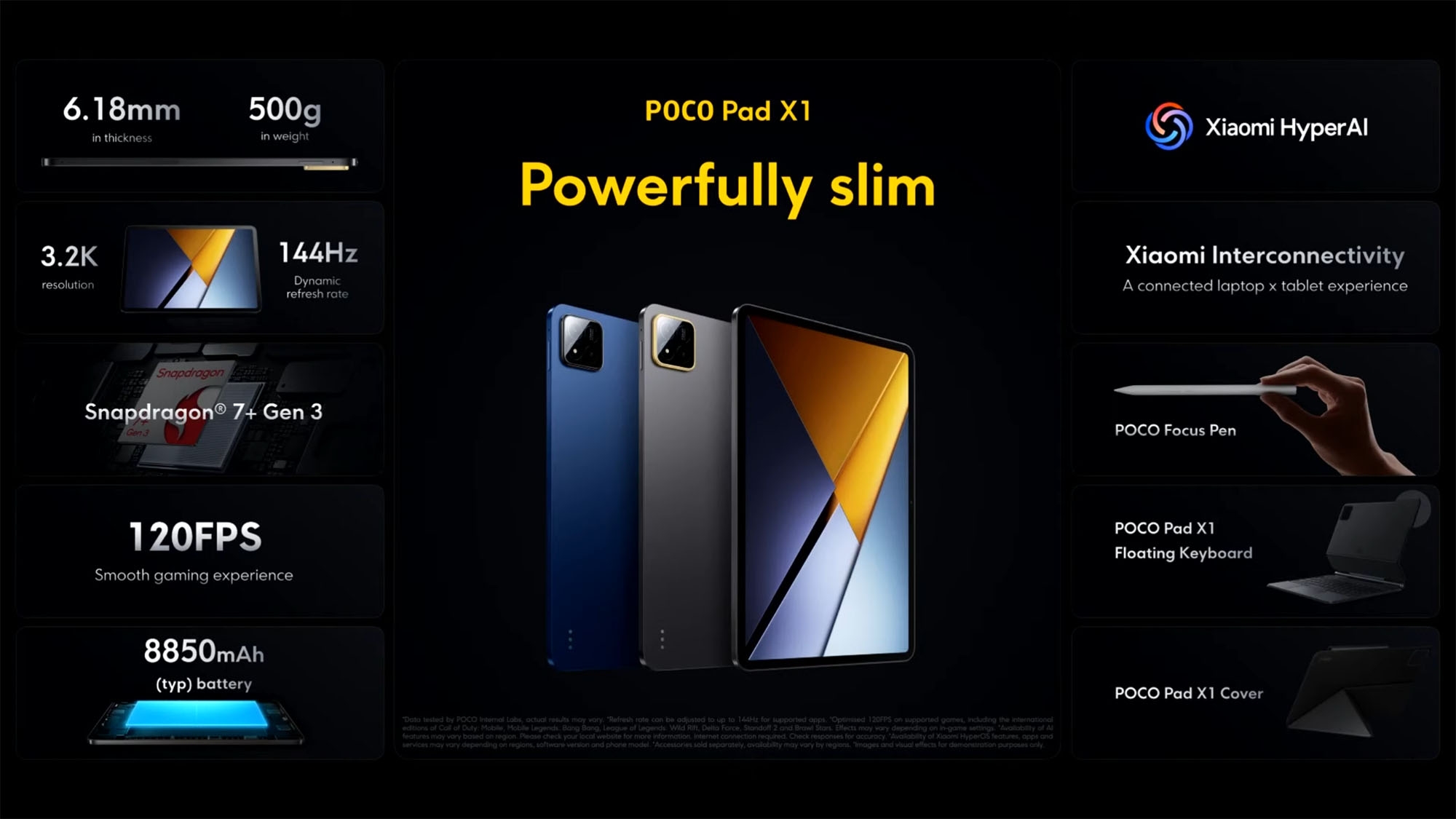 Xiaomi, güçlü Qualcomm Snapdragon 7 Plus Gen 3 işlemciye sahip yeni uygun fiyatlı tabletini piyasaya sürdü. 144 Hz ve 3.1K ekranla donatılan Türkiye’de de satışa sunulan Poco Pad X1, 512 GB depolama alanı ve ultra ince gövdesinde büyük bir bataryayla geliyor.