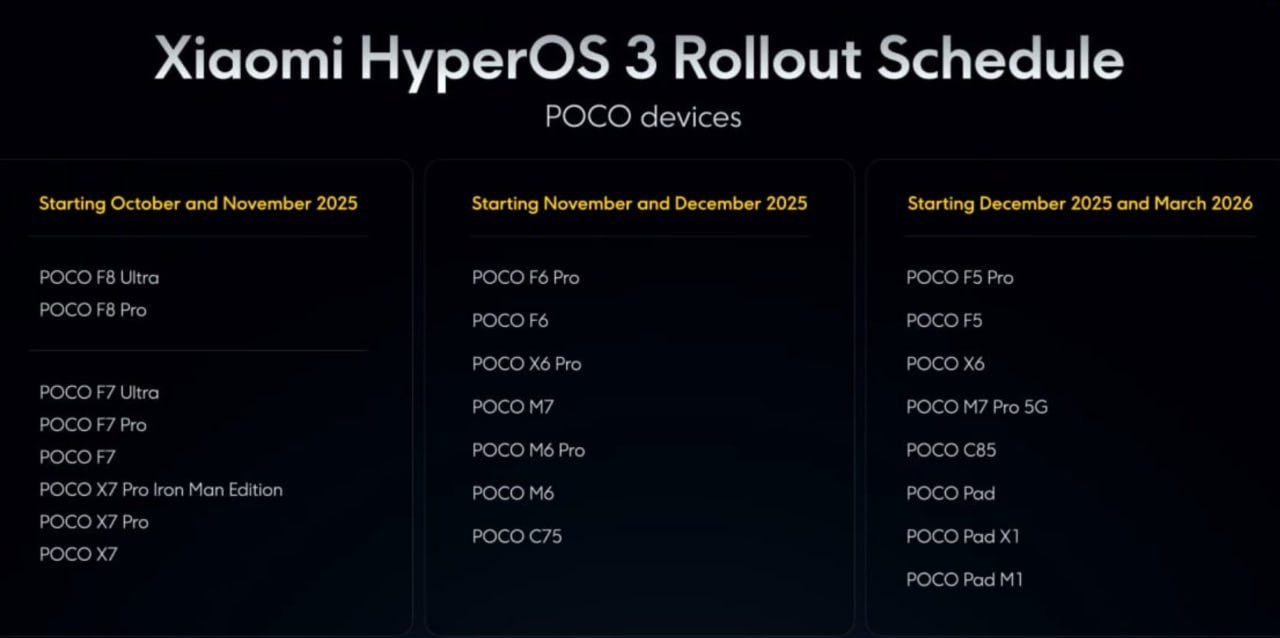 Xiaomi, HyperOS 3 güncellemesini alacak Xiaomi, Redmi ve birkaç POCO modelinin listesini daha önce yayınlamıştı ancak şimdi POCO, cihazları için Android 16 güncelleme takvimini açıkladı.