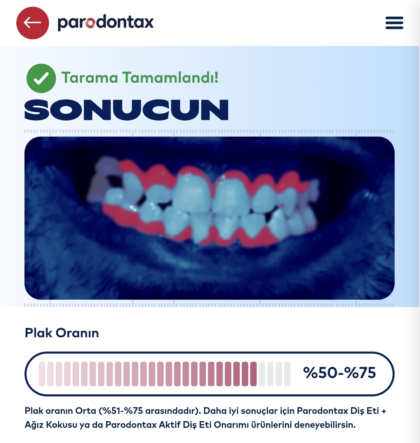Paradontax’ın Haleon Türkiye çatısı altında geliştirdiği Plak Check isimli yapay zeka aracı, ağız fotoğrafınızı analiz ederek bakterileri gün yüzüne çıkarıyor. Diş yüzeyindeki bakteriyel plağı görselleştiren uygulama, en riskli bölgeleri gösteriyor ve kişiselleştirilmiş öneriler sunuyor.