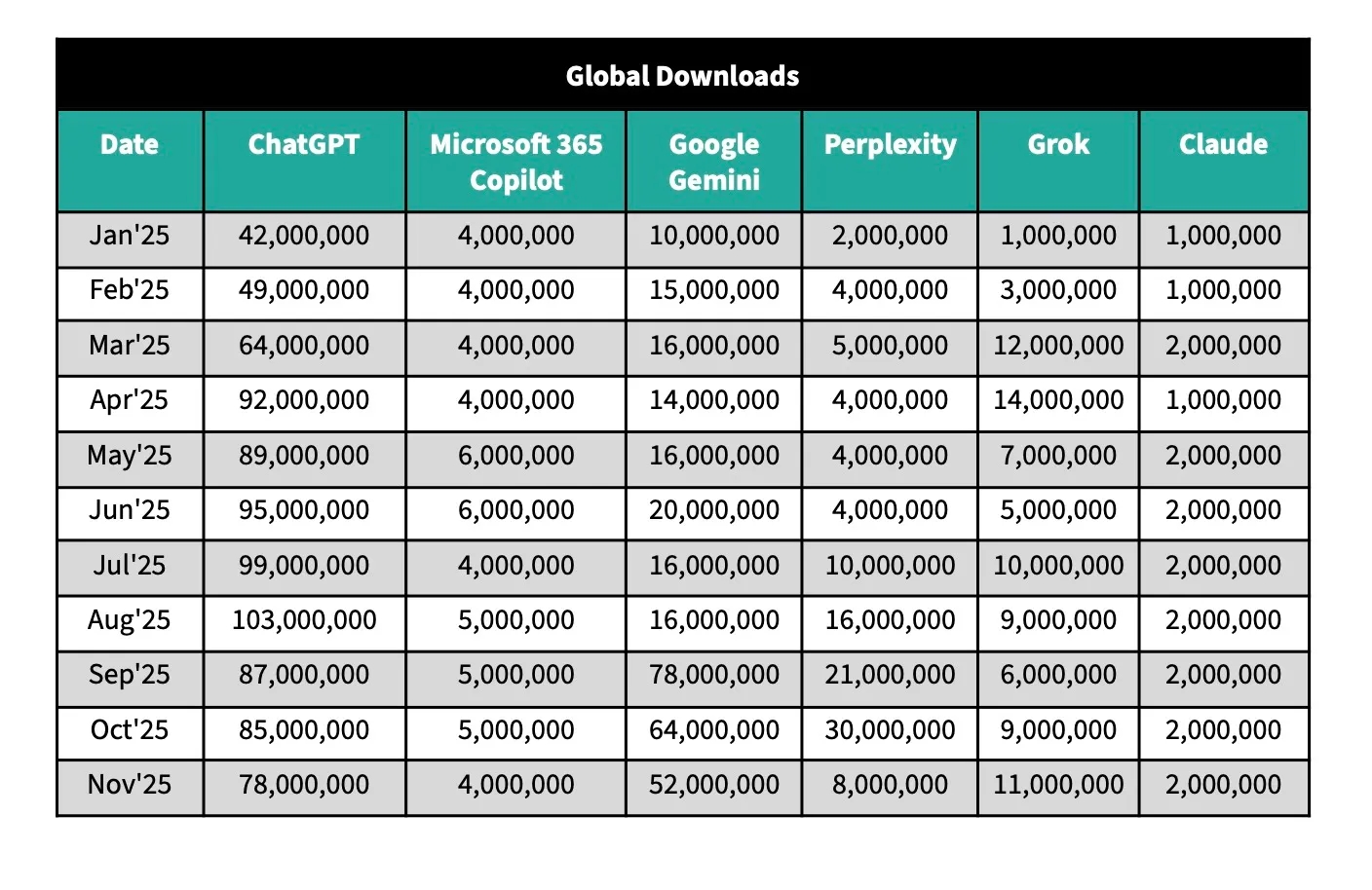 Buna karşılık Google’ın Gemini modeli, indirme artışı, aylık aktif kullanıcı sayısı ve uygulamada geçirilen süre gibi kritik metriklerde öne geçmeye başladı.