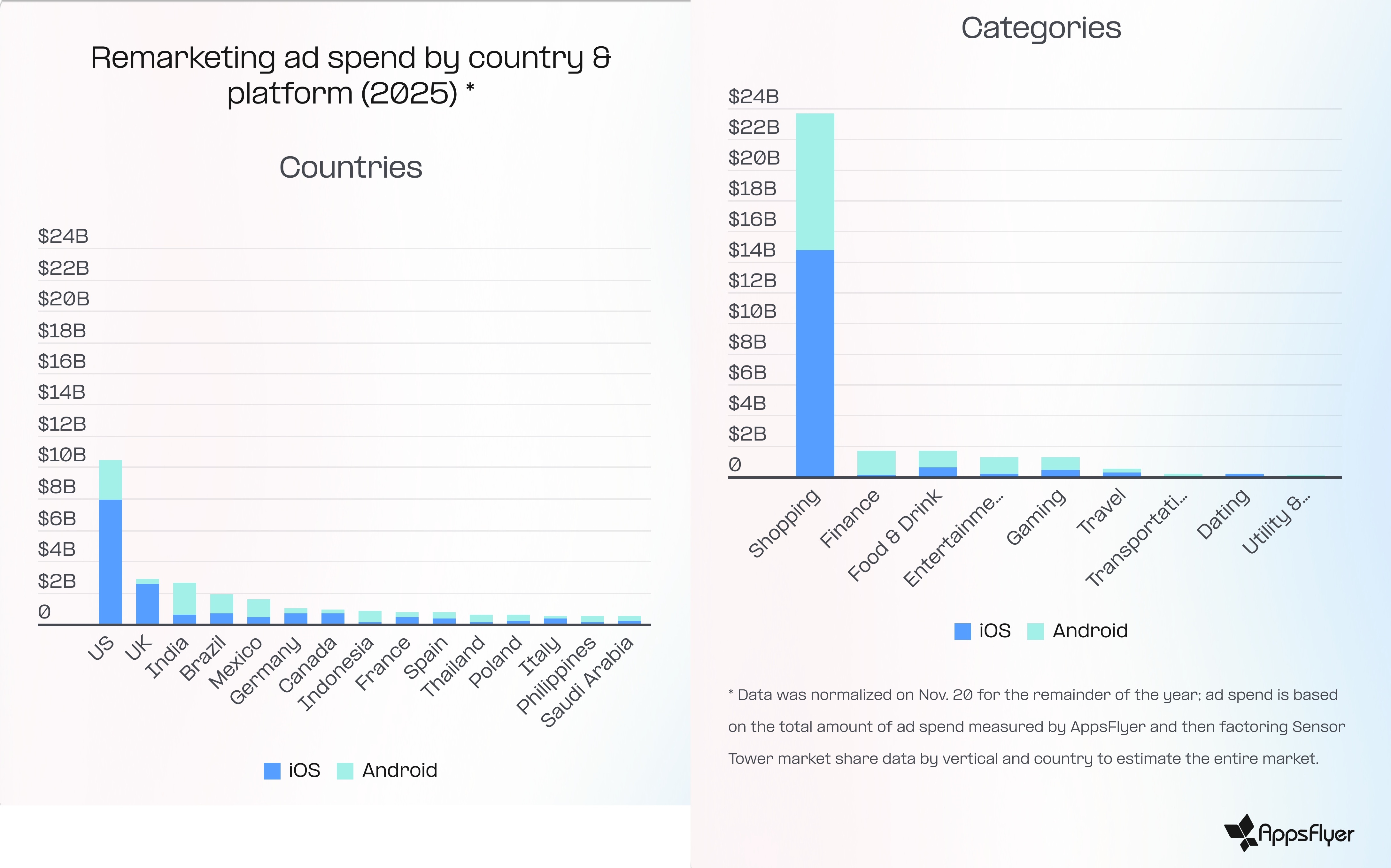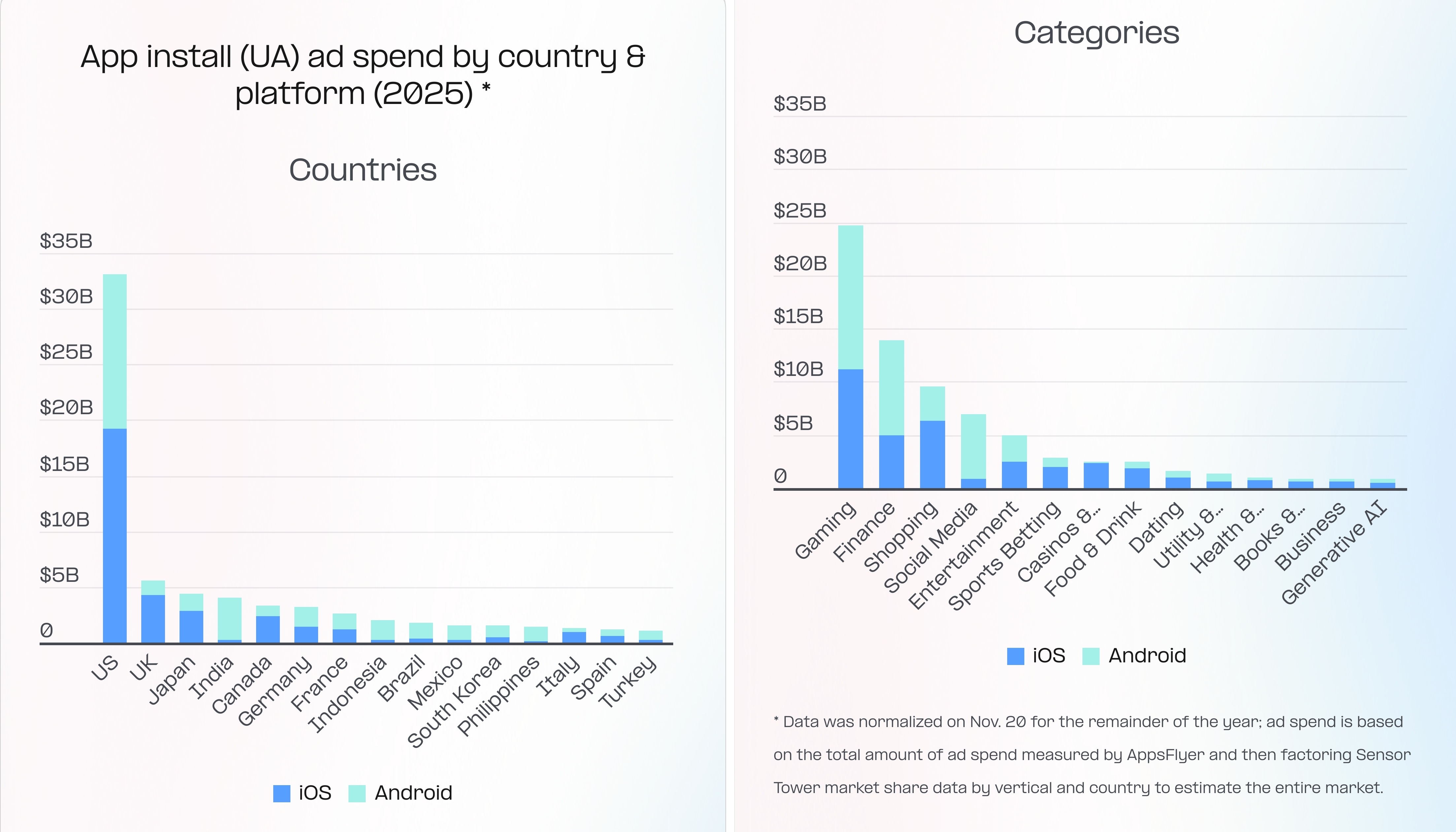 Öte yandan raporda yer alan diğer veriler, uygulama ekonomisinin genel yönünü de gösteriyor.. Küresel kullanıcı edinme harcamaları %13 artarak 78 milyar dolara yükselirken, bu büyümenin büyük kısmı iOS ve oyun dışı uygulamalardan geldi. Yeniden pazarlama harcamaları ise %37 artışla 31,3 milyar dolara ulaştı ve toplam harcamalar içindeki payını artırdı. Özellikle shopping kategorisinde Çin merkezli e-ticaret yatırımlarının etkisiyle güçlü bir büyüme yaşandı. Avrupa pazarı da İspanya, İtalya ve Birleşik Krallık öncülüğünde ivme yakaladı. ABD ise toplam kullanıcı edinme harcamalarının %42’sini oluşturarak liderliğini sürdürdü.