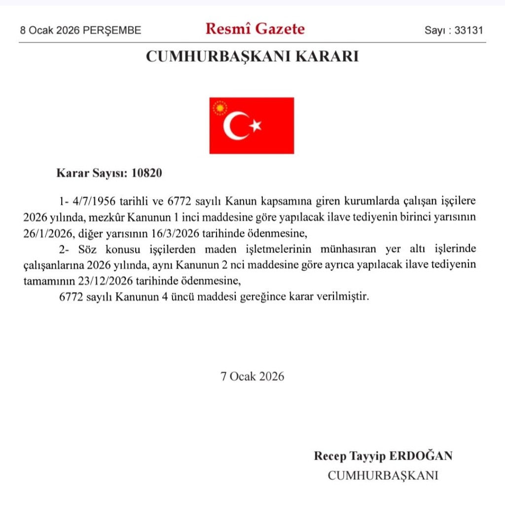 BALSEN Büro Ailesi Sendikası olarak, Resmî Gazete’de yayımlanan Cumhurbaşkanlığı Kararı doğrultusunda kamu işçilerine yapılacak tediye ve ikramiye ödemelerini olumlu karşılıyoruz. Kamu çalışanlarının ekonomik koşullar karşısında desteklenmesi, sosyal devlet anlayışının önemli bir parçasıdır.