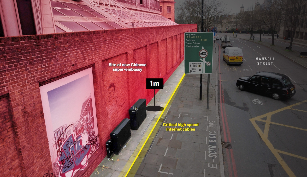 Eski Kraliyet Darphanesi arazisinde yükselmesi planlanan bu dev diplomatik yerleşke tamamlandığında Avrupa’daki en büyük Çin büyükelçiliği olacak. Ancak projeye dair en dikkat çekici detay, yer altındaki gizli bir odanın doğrudan City of London’a finansal veri taşıyan fiber optik kabloların hemen yanına konumlandırılması.
