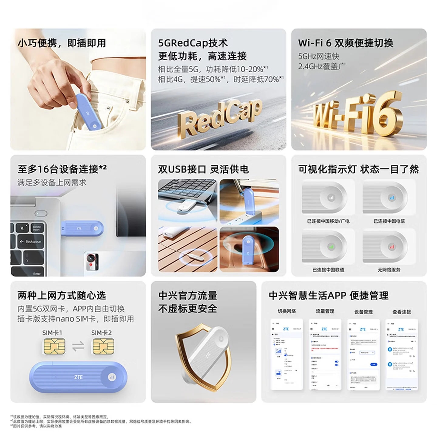 ZTE, yeni kompakt taşınabilir Wi-Fi cihazını Çin’de piyasaya sürdü. 5G RedCap teknolojisini kullanan ZTE F40, standart ve nano SIM kart yuvalı iki modelle geliyor.