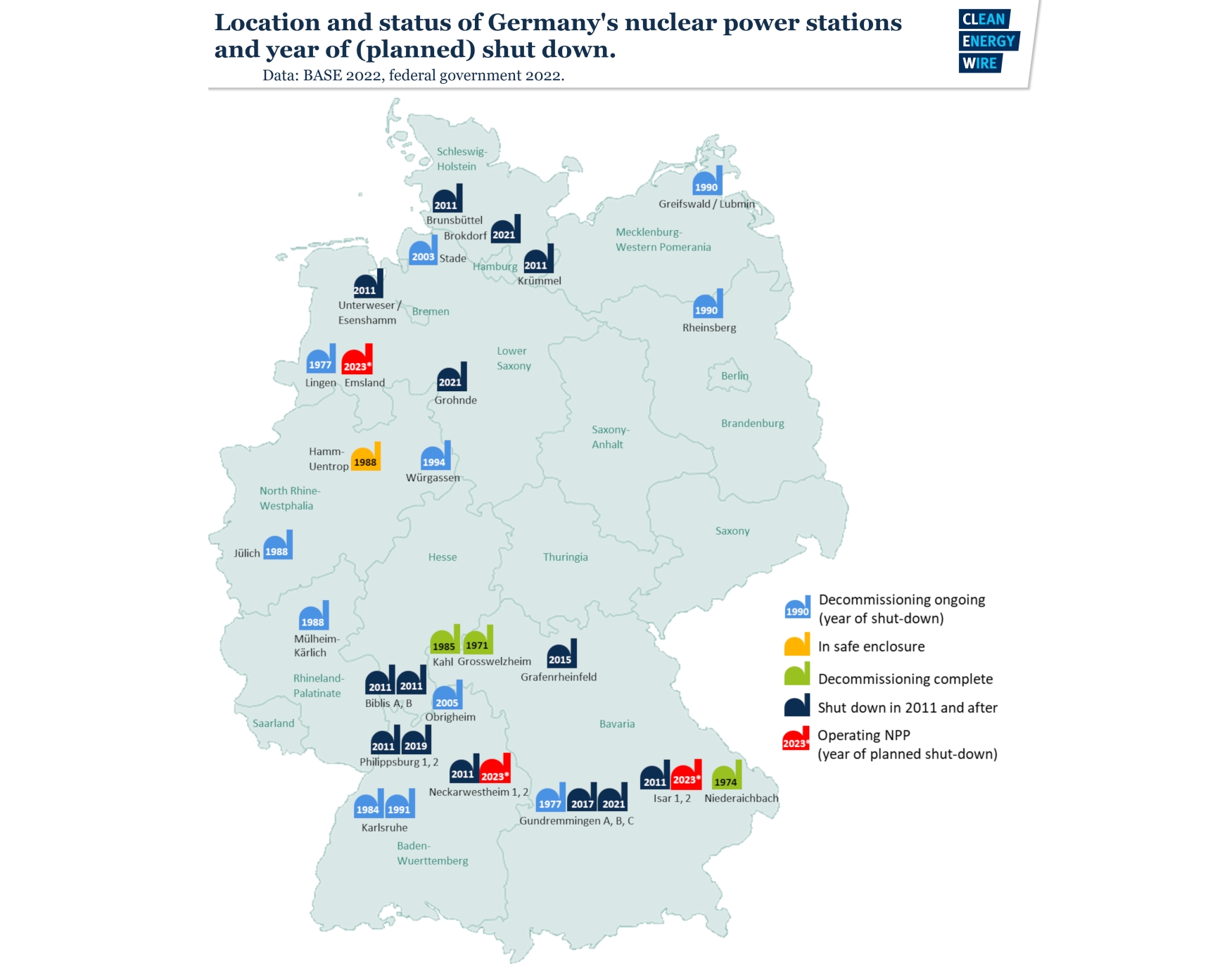Almanya’nın nükleer enerjiden çıkış süreci 2011’de Japonya’da yaşanan Fukuşima nükleer felaketinin ardından hız kazandı. Dönemin Başbakanı Angela Merkel liderliğindeki hükümet, kamuoyundaki güvenlik endişeleri doğrultusunda nükleer santrallerin kapatılmasını öngören politikayı hızlandırdı. Amaç, nükleer riskleri azaltmak ve enerji üretiminde yenilenebilir kaynaklara yönelmekti. Bu çerçevede yaklaşık 20 yıllık bir süreçte çok sayıda reaktör kapatıldı ve Nisan 2023’te faaliyette olan son üç nükleer santral de devre dışı bırakıldı. Böylece Almanya, yaklaşık 60 yıllık nükleer enerji kullanımına tamamen son vermiş oldu. Nükleer enerji bir zamanlar Almanya’nın enerji ihtiyacının yüzde 28’ini karşılıyordu ve 21 GW kapasiteye sahipti.