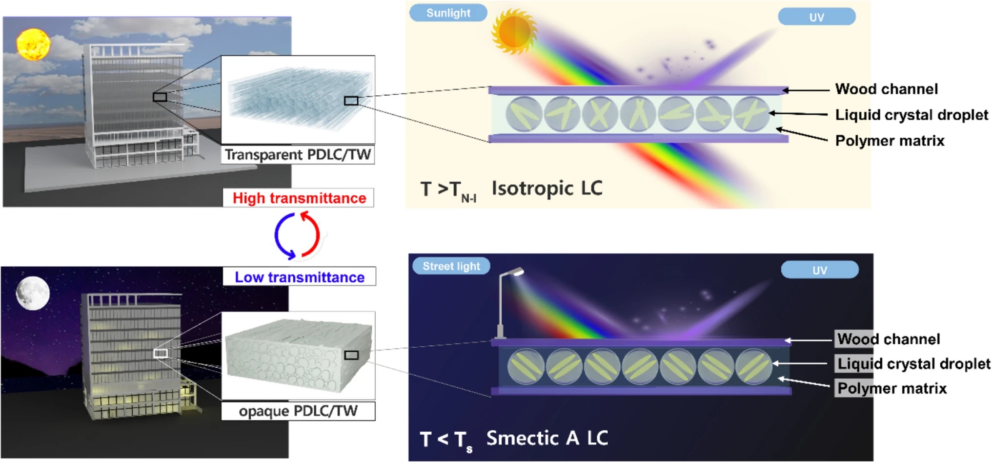 Güney Kore’deki araştırmacılar elektrik veya elektronik bileşenlere ihtiyaç duymadan ışık geçirgenliğini ayarlayabilen, zararlı UV ışınlarını tamamen engelleyen ve yüksek ısı yalıtımı sağlayan şeffaf ahşap bazlı akıllı pencere geliştirdi. Yeni malzeme, klasik akıllı cam sistemlerine pasif ve enerji dostu bir alternatif sunuyor.
