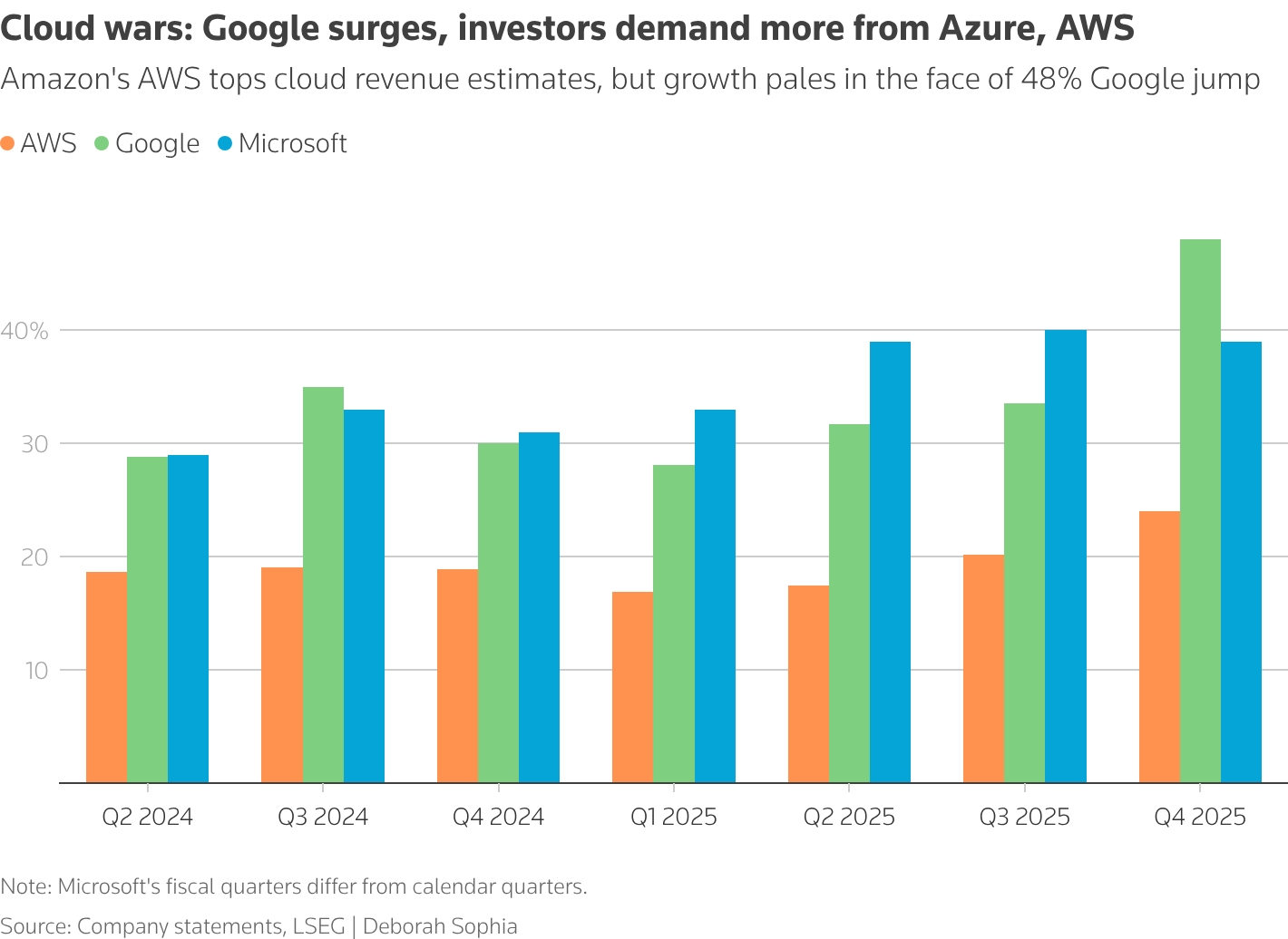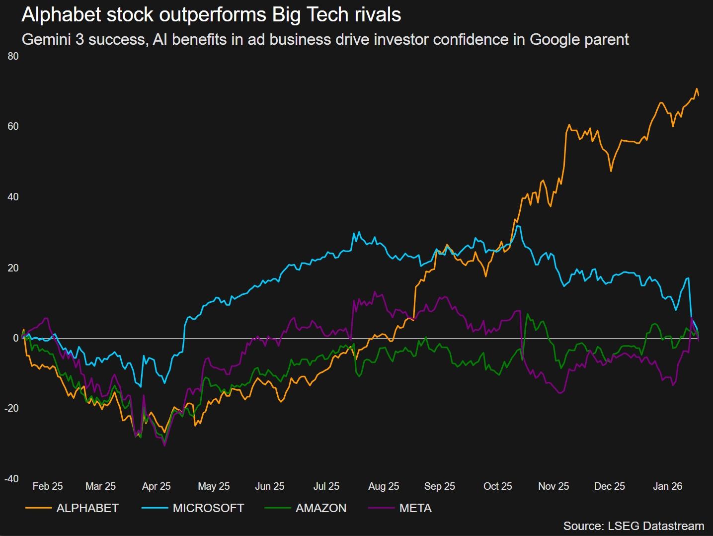 Alphabet hisseleri, 2025 başından bu yana yüzde 76 değer kazanmış durumda. Şirket aynı zamanda ilk kez 400 milyar dolar gelir elde ettiğini de duyurdu. Şirketin bulut bilişim birimi, 2025’in Aralık ayında sona eren dördüncü çeyrekte yüzde 48 büyüyerek 17,7 milyar dolarlık gelir elde etti. Bu performans, analist beklentilerinin üzerine çıkarken, son dört yılı aşkın sürenin en hızlı büyüme oranı olarak kayda geçti.