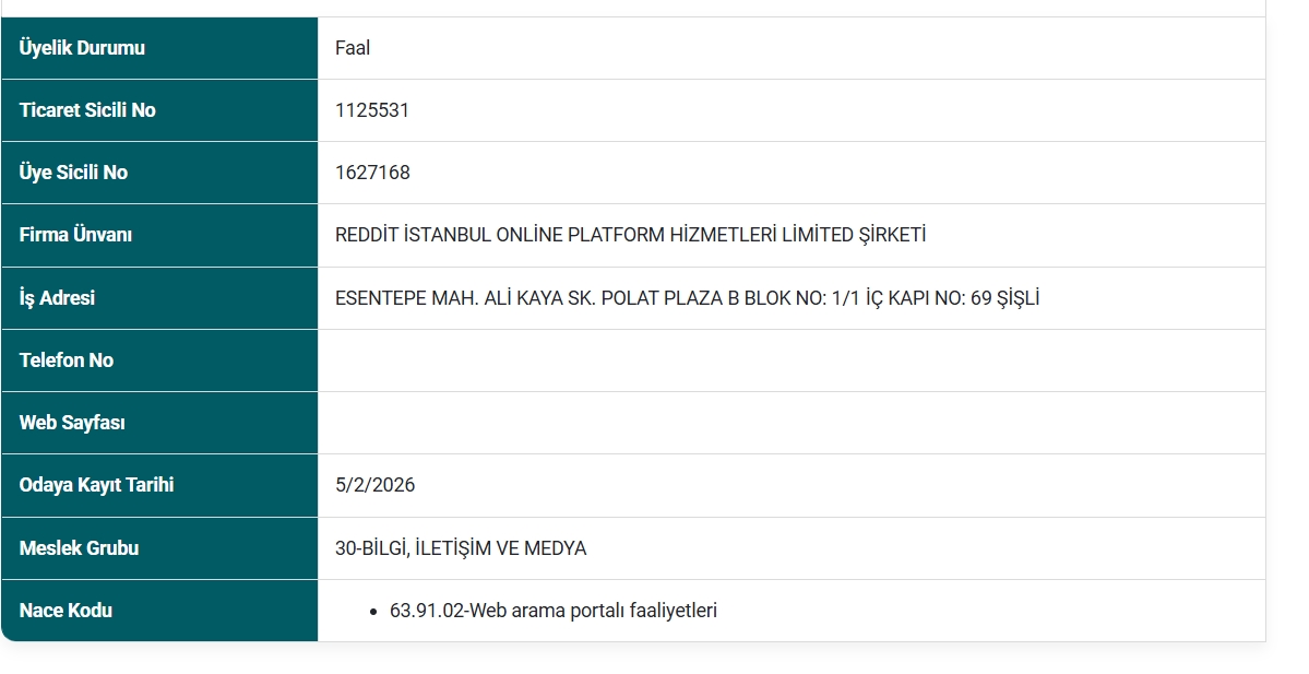 İnternet dünyasının en büyük platformlarından olan Reddit, sürpriz bir hamle ile Türkiye’de resmi olarak faaliyetlerine başladı. Hamle İstanbul Ticaret Odası tarafından yayınlanan sicil gazetesi ile ortaya çıktı.