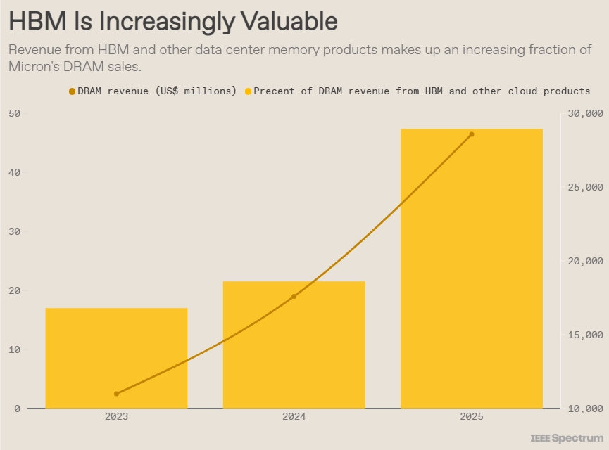 Bu gelişmeler, DRAM üreticilerinin gelir dağılımını da değiştirdi. SK Hynix ve Samsung’un ardından sektörün üçüncü büyük üreticisi olan Micron, 2023’te DRAM gelirlerinin yalnızca yüzde 17’sinin HBM ve bulut odaklı bellekten geldiğini, bu oranın 2025’te neredeyse yüzde 50’ye ulaştığını açıkladı. Micron’un öngörüsüne göre HBM pazarının toplam büyüklüğü 2025’te 35 milyar dolar seviyesindeyken, 2028’de 100 milyar dolara ulaşacak. Bu rakam, 2024’teki toplam DRAM pazarının tamamından daha büyük bir hacme işaret ediyor. Şirket yönetimine göre sektör genelinde talep, öngörülebilir gelecekte arzı kayda değer ölçüde aşmaya devam edecek.