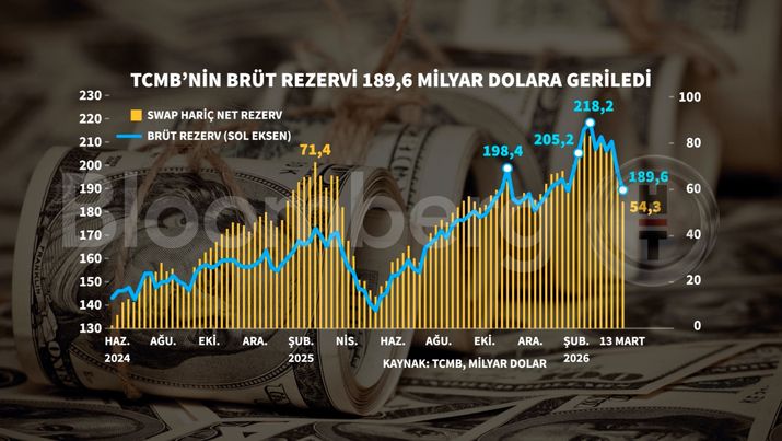 Bir önceki ay 218,2 milyar doları test eden brüt döviz rezervleri, son verilerle birlikte 189,6 milyar dolara inerek 190 milyar doların altını gördü.