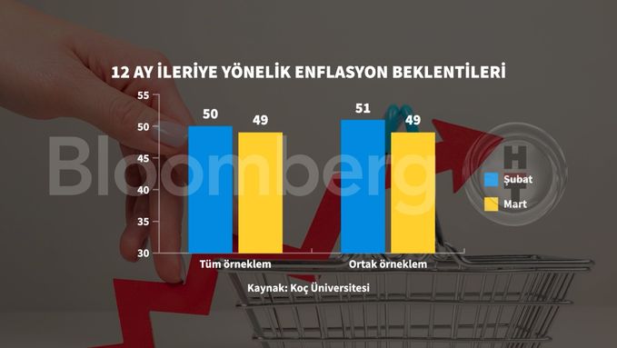 Ankete göre, 12 ay sonrasına ilişkin enflasyon beklentisi bir önceki aya kıyasla 1 puan azalarak yüzde 49 seviyesine geriledi.